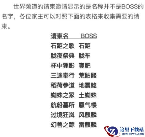 世界频道的请帖邀请显示的是名称并不是BOSS的名字