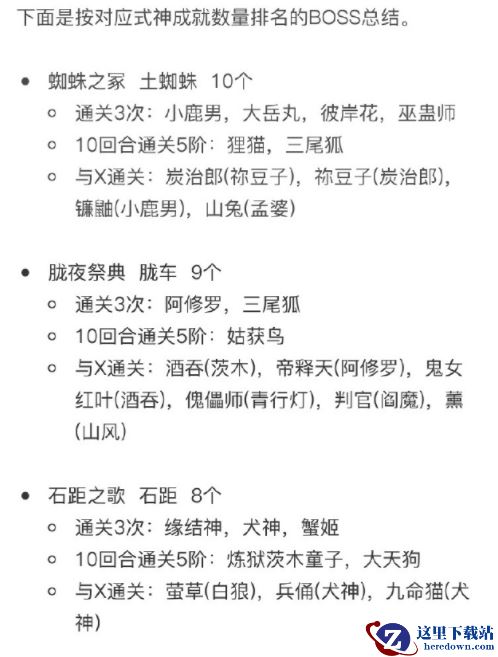 玩家们可以通过下面的表格来打BOSS