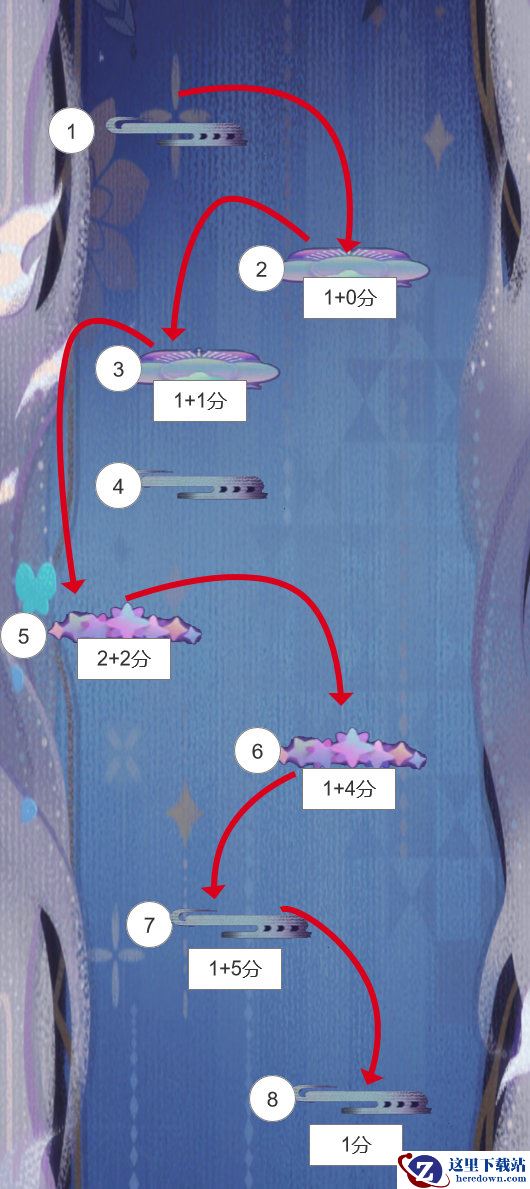 在坠梦时光活动中,家主大人每下一层就能获得1分,但是你知道吗?如果你一直掉落在星星平台或蹦蹦云上,你的分数就会飞速增长。