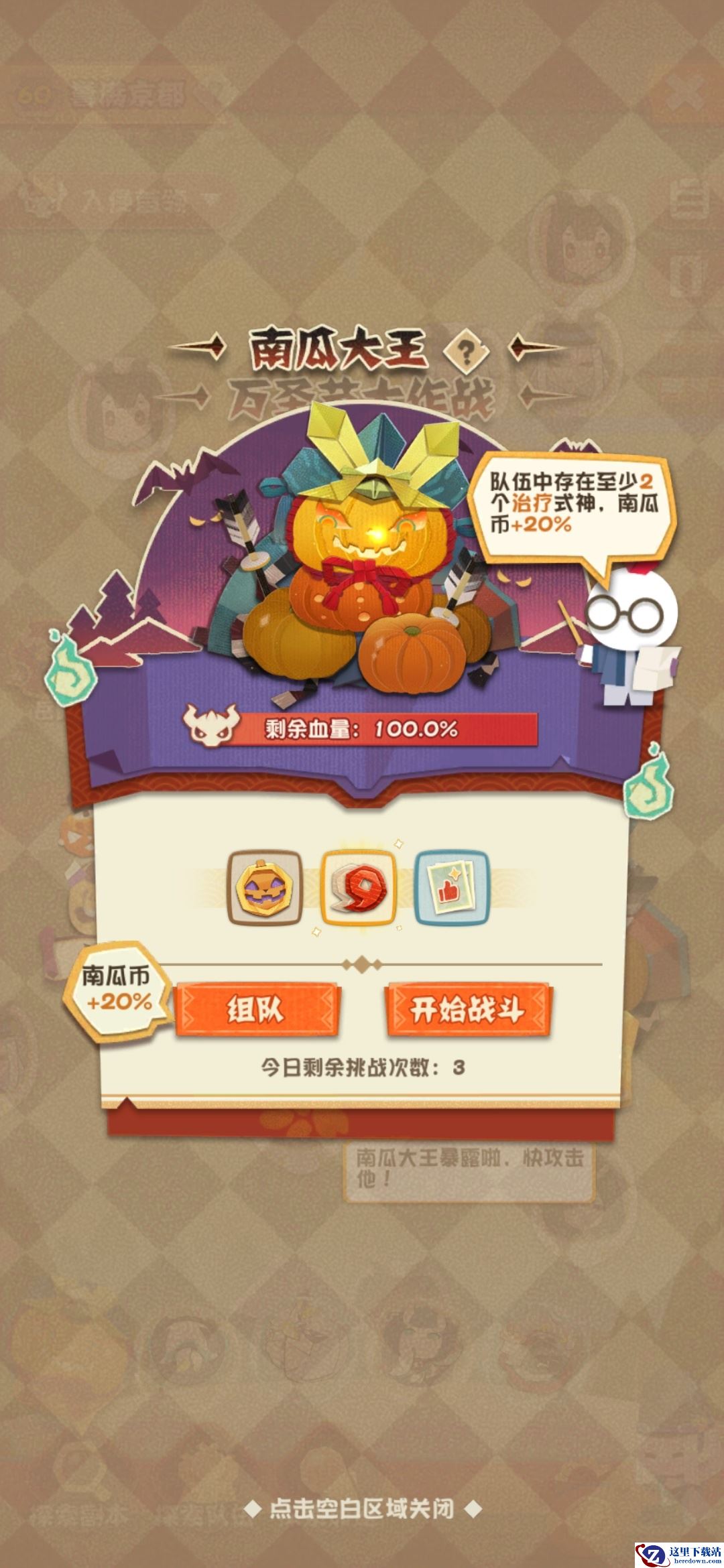 ①南瓜大王的战斗类似于美食副本,南瓜大王并不会攻击家主,家主不需要带治疗式神。