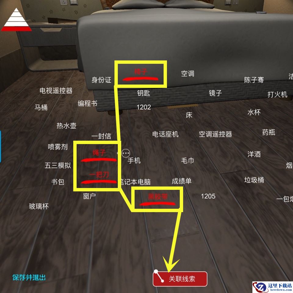 绑架工具:关联四个五级线索获得,分别是:【黑胶带】、【椅子】、【一把刀】、【绳子】