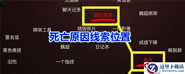 死亡原因:这是一个不能直接获得的线索,需要关联五个其他线索获得,分别是: