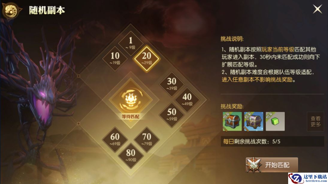 我们在活动中选择“随机副本”,进入游戏后进行匹配,通关后就能获得大量的经验奖励和装备奖励。