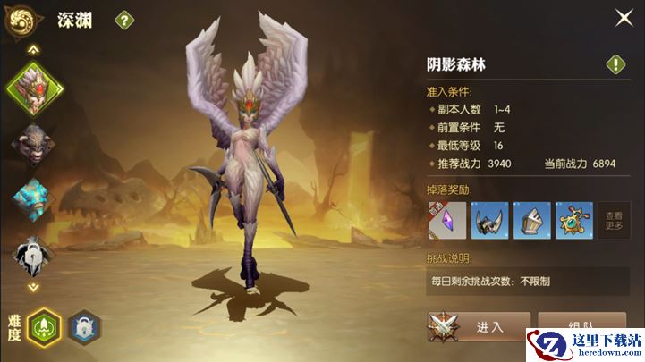 点击右上的“深渊”,选择适合自己的副本,不限次数,可以4名冒险家一起组队,通关副本后就能获得相应的奖励和经验值。