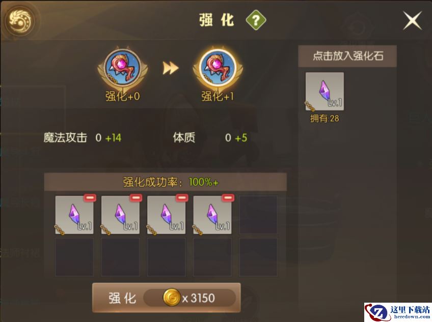 1、强化成功率会随着强化石个数的增加而提升,最高100%。