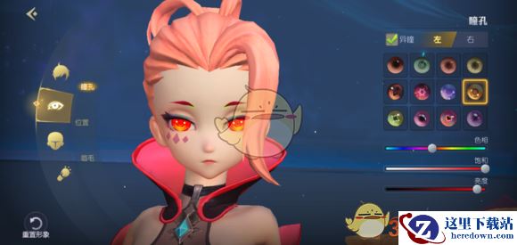 然后开始捏眼睛,眼睛分为左右两个区域进行单独展示,大家甚至可以选择左右不同的瞳孔造型,显得更加独特。选择好瞳仁之后,可以选择眼睛的底色。接下来可以调整眼睛的大小和位置。