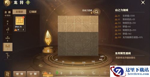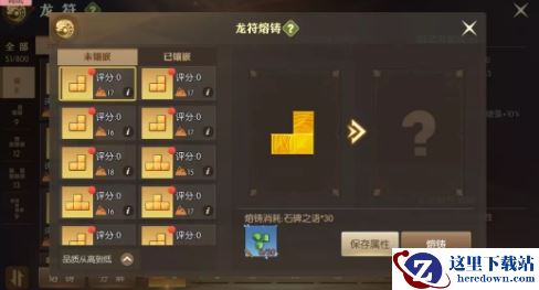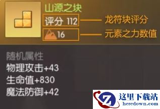 每个龙符块都由元素之力和随机属性构成,随机属性越高,格子数越少的龙符块评分越高。