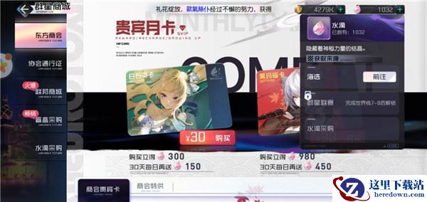 1、水滴在游戏中建议优先拿来抽10连,因为强大的角色才是重点。