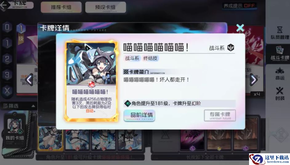 喵喵喵!小喵咪变身!黑是一个奇特的宝藏女孩!小编认为角色【黑】是目前最为完美的战斗系角色,如果光看黑的自带卡牌的确有点鸡肋,伤害也有点拿不出手,但黑的专武很好的解决了“针对型”伤害提高的问题。