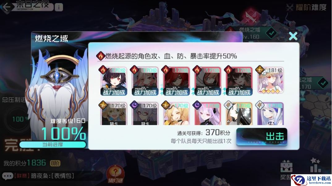 末日之役开启后刷新5个不同起源的传送点。进入传送点后,同起源的角色会获得战力加成,每个角色当天只能出战一次。