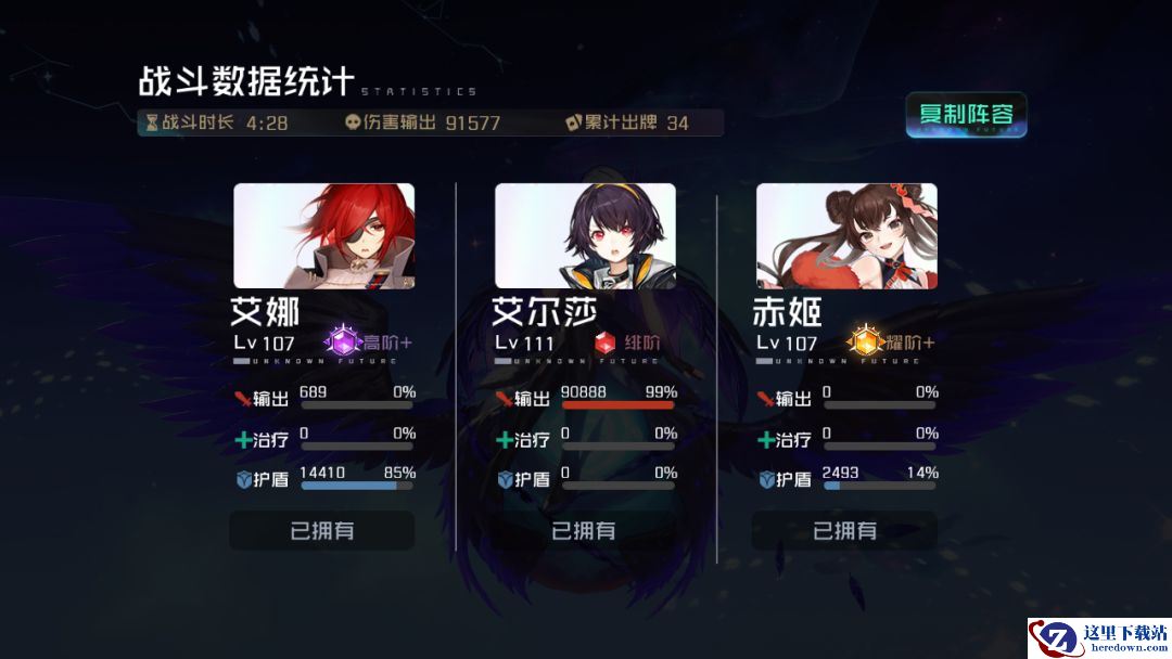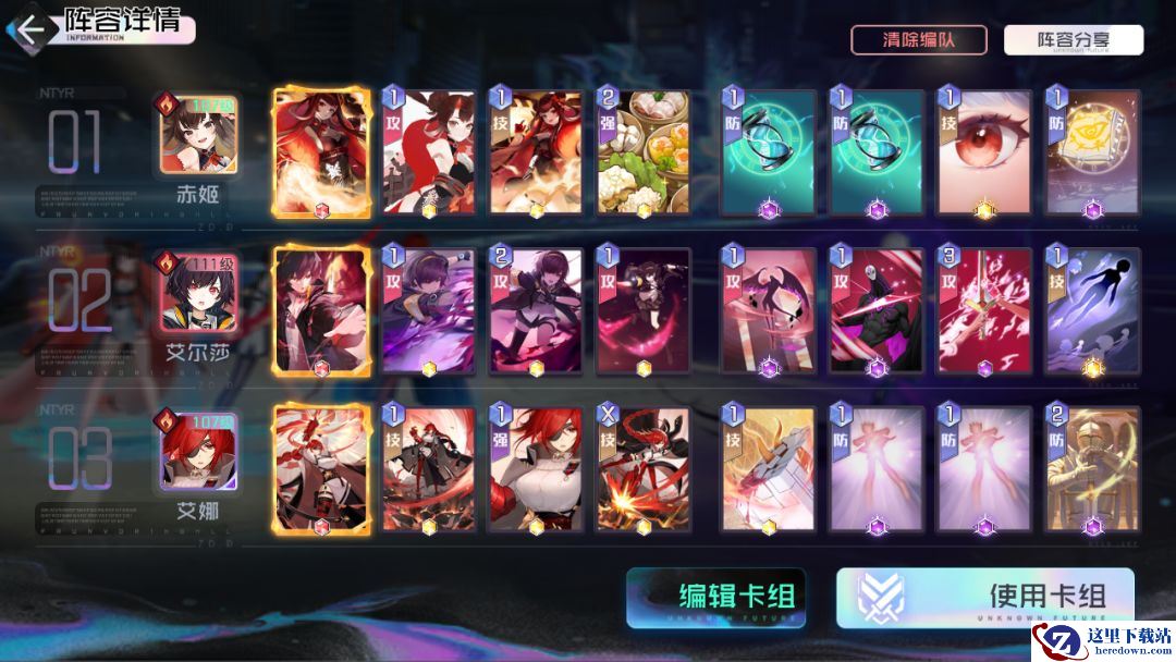 2、装备---原则就是将支援、战斗、守护最好的“借给”即将出战的三位卡牌。