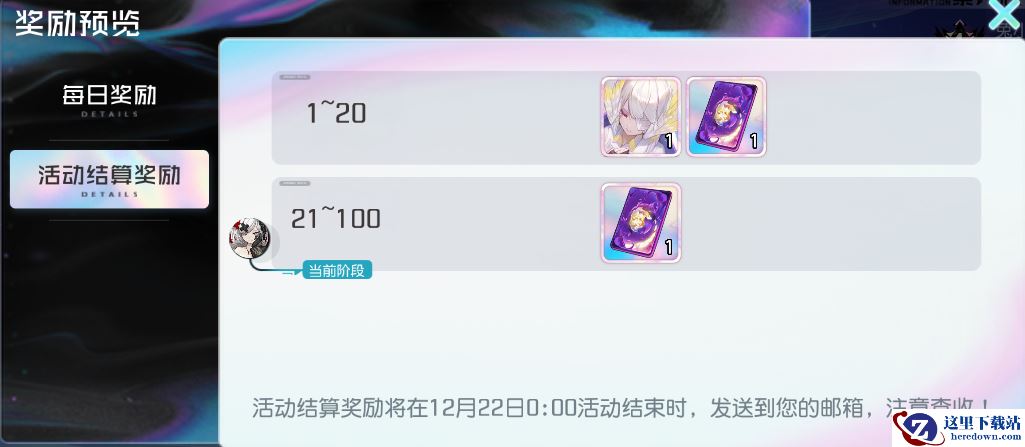每日会根据积分排行发放虚无碎片奖励,活动结算前20会获得未来[白金福音]的皮肤和卡背,21-100会获得卡背。