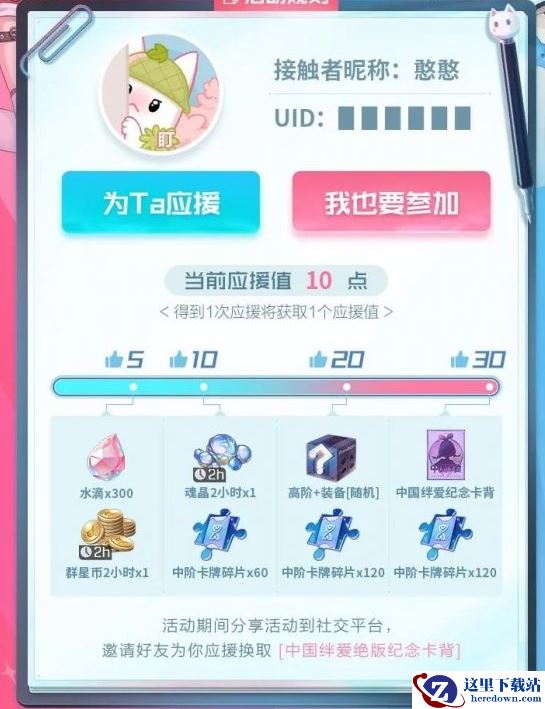 另外敲咪咪说,为好友应援的接触者还会获得惊喜奖品哦。