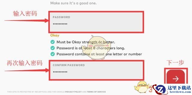 5、然后创建你登陆游戏的密码, 需要输入两次(建议使用英文和数字结合,更容易被系统认可), 游戏登陆密码,一定要记得!