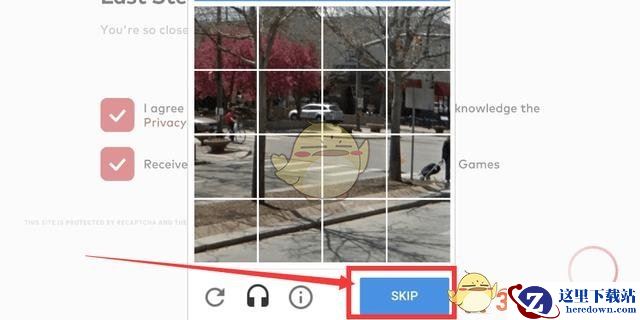 B、勾选正确的图片,图片上出现绿色√→然后点击右下方verify按钮→一直勾选符合条件的图片,点击verify→直到9张图片中没有符合要求的图片→这时往下滑,点击右下方的skip按钮。