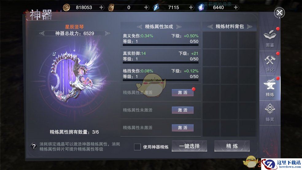 未获得的精炼属性需要激活才能生效。更换已经装备的神器;现有的精炼属性不会发生改变。