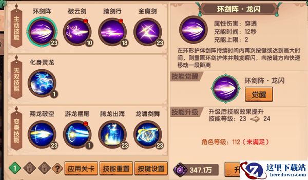 一技能:环剑阵原装/逆鳞/龙闪:满