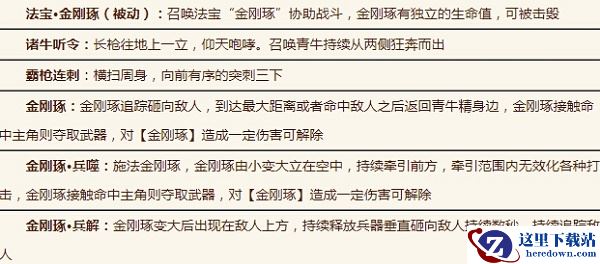 3.BOSS拥有1被动:法宝 · 金刚琢,与4技能:霸枪连刺、金刚琢、金刚琢 · 兵噬、金刚琢 · 兵解。