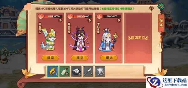 1、现在一共有3位NPC加入了结缘系统,分别是神秘商人、瑶池仙女和太白金星。每位NPC都有对应的作用。