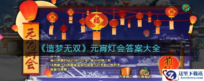 《造梦无双》游戏中元宵灯会答题活动已经开启了,很多玩家想知道正确答案是什么,那么今天小编就给大家介绍一下造梦无双元宵灯会答案大全,有需要的小伙伴不要错过了。