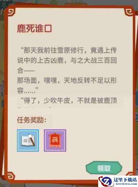 以上就是小编整理带来的《掌门别挂机》鹿死谁口奇遇任务攻略,更多精彩内容,请点击关注这里下载站,小编将持续为您更新!