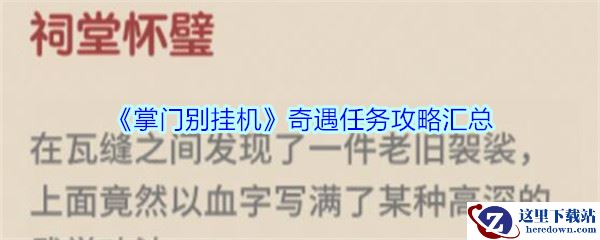 以上就是小编整理带来的《掌门别挂机》玄阴祸福奇遇任务攻略,更多精彩内容,请点击关注这里下载站,小编将持续为您更新!