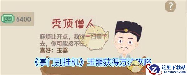 《掌门别挂机》是一款放置挂机题材的江湖武侠冒险风格的卡通游戏,玉器是秃顶僧人喜好的物品,很多小伙伴想知道玉器在哪里掉呢?下面小编就给大家带来了《掌门别挂机》玉器获得方法攻略介绍,感兴趣的一起看看吧!