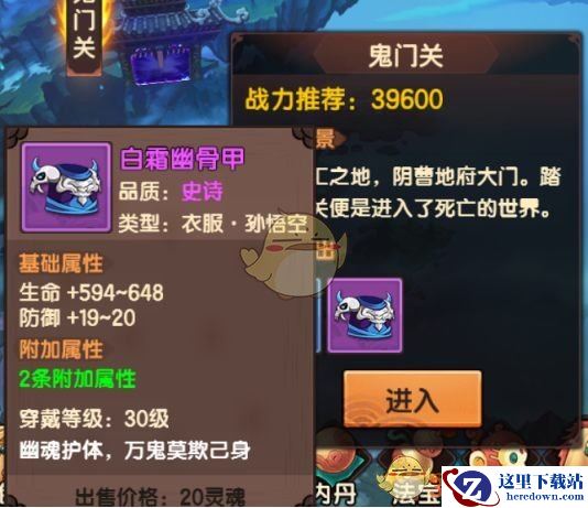 黄泉地狱-黄泉路区域可获得白霜幽骨套装