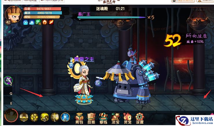 图中箭头指的位子就是主要的输出位子因为我被动是霜冻可以有更多的输出空间,这个位子平A和玄冰破玄锥就能打到距离我们不远的BOSS这样进行消耗加上上面说的多技能的方法还是可以轻松地过秦广王。