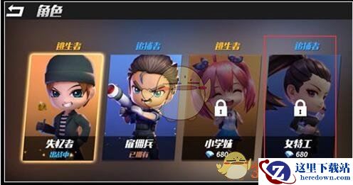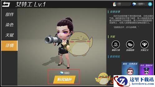 2、进入角色界面后可以看到女特工,点击女特工即可进入购买界面;