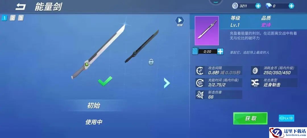 品质:史诗斩击伤害:66充能时间:3/2.75/2(局内升级)