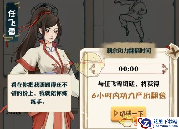 萌新还可通过闭关修炼,使用看广告或者元宝进行加速,利用获得真气增加功力收益倍数,10倍20倍增益都是很常见的。最后,大家通过与任飞雪进行切磋可获得6小时功力产出翻倍,任雪小姐姐真给力呀!