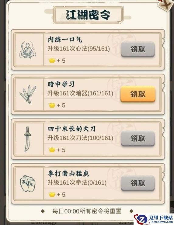 江湖密令每天都会有大量的元宝奖励,萌新可通过每日00:00重置的江湖密令任务达成发家致富的江湖梦。大家完成指定目标任务将获得大量元宝奖励。例如,通关、强化心法、升级武术等都可以助你一臂之力。日积月累下,小助手振兴门派有望哈~