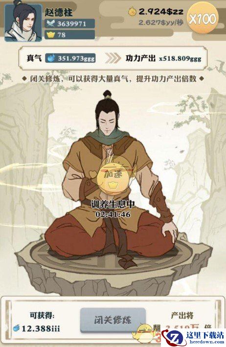 没有买丹药,每次闭关结束后15-20分钟集中操作,强化,升级武功,推图,吃灵芝,结束一整套以后,在下次闭关之前不要再升级武功和强化了,提升不大,而且会影响下一次闭关的真气翻倍收益。