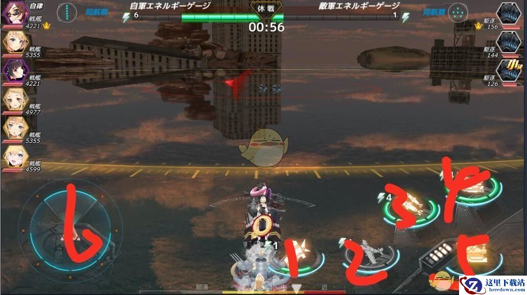 方向盘。这里要强调的是正上方是朝向敌方舰队的,而不是前方。同理左右下也是相对于对面舰队来说的。