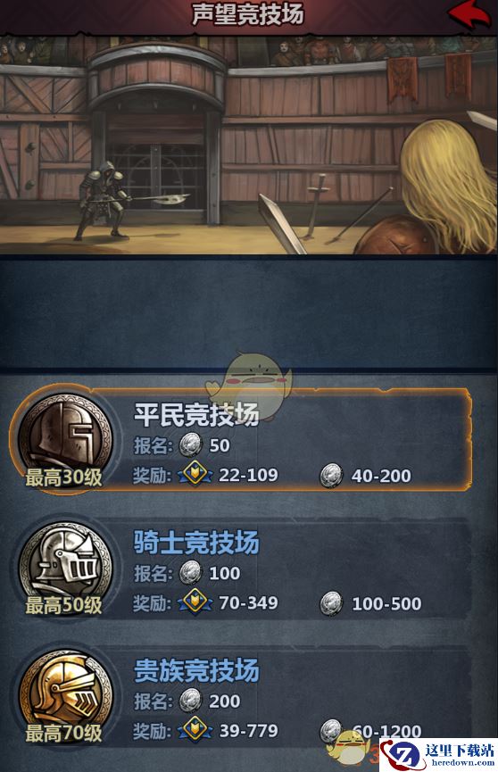 花钱,然后参加比试,有不同的级别竞技场,分为平民,骑士,贵族,平民需要赢三场,骑士需要五场,贵族则要赢七次。