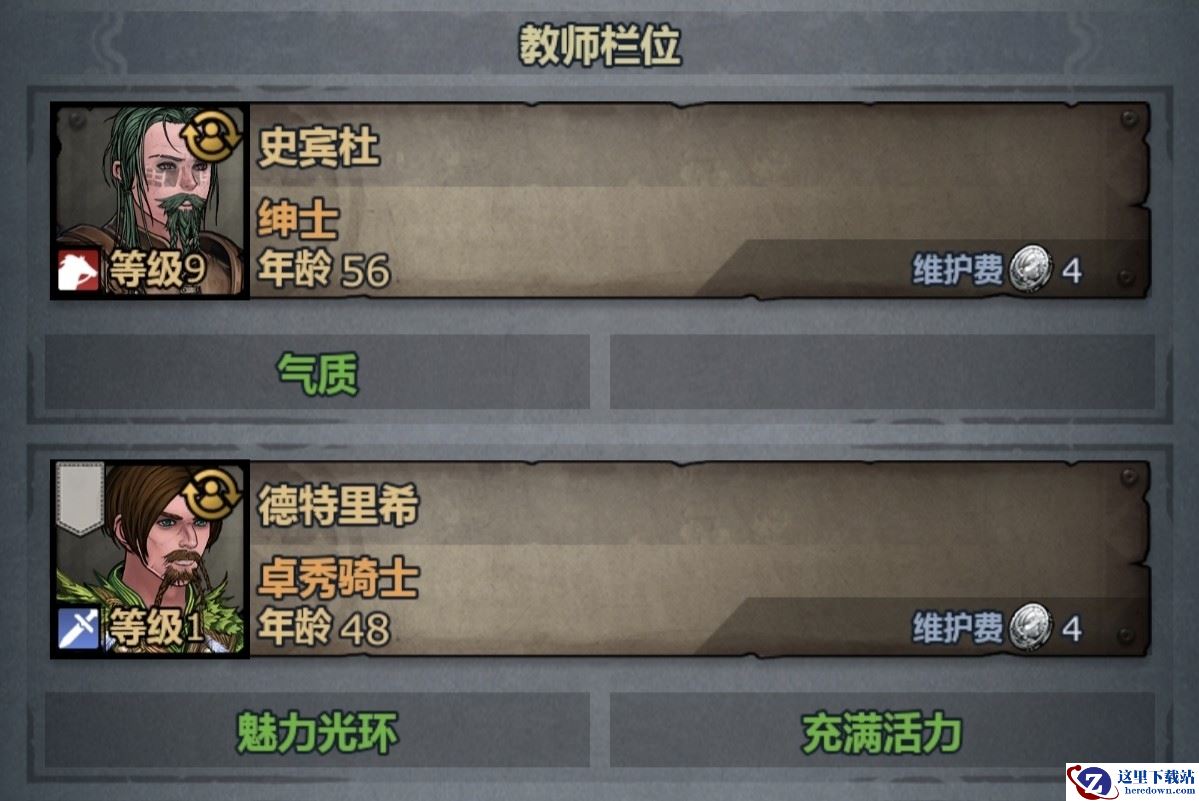 这是酒馆对萌新的长远价值核心——通过招募带优质特性的角色当老师,帮家族后代提升爵位、提纯血脉。比如: