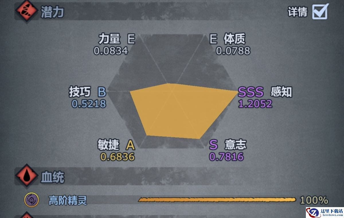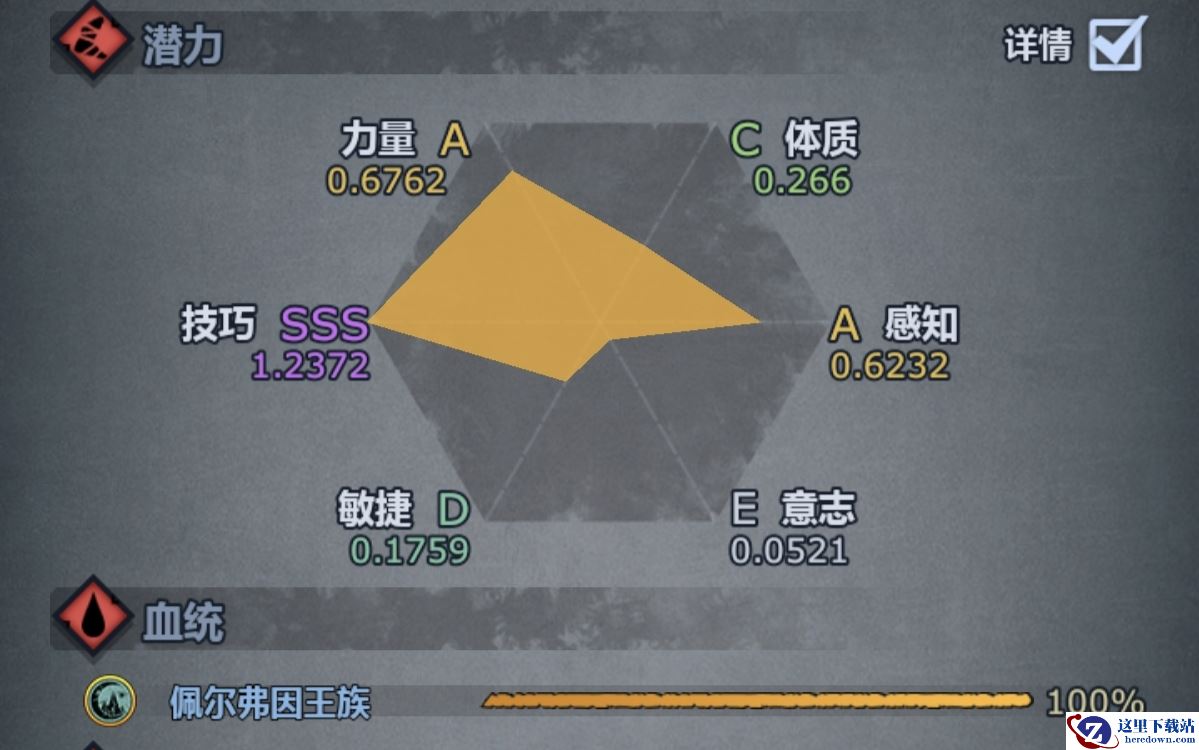 1. 属性:高纯度血脉能为角色提供更高的力量、技巧、体质等基础属性加成,还能解锁专属强力血脉特性,比如精灵血脉的感知和佩尔血脉的技巧等。