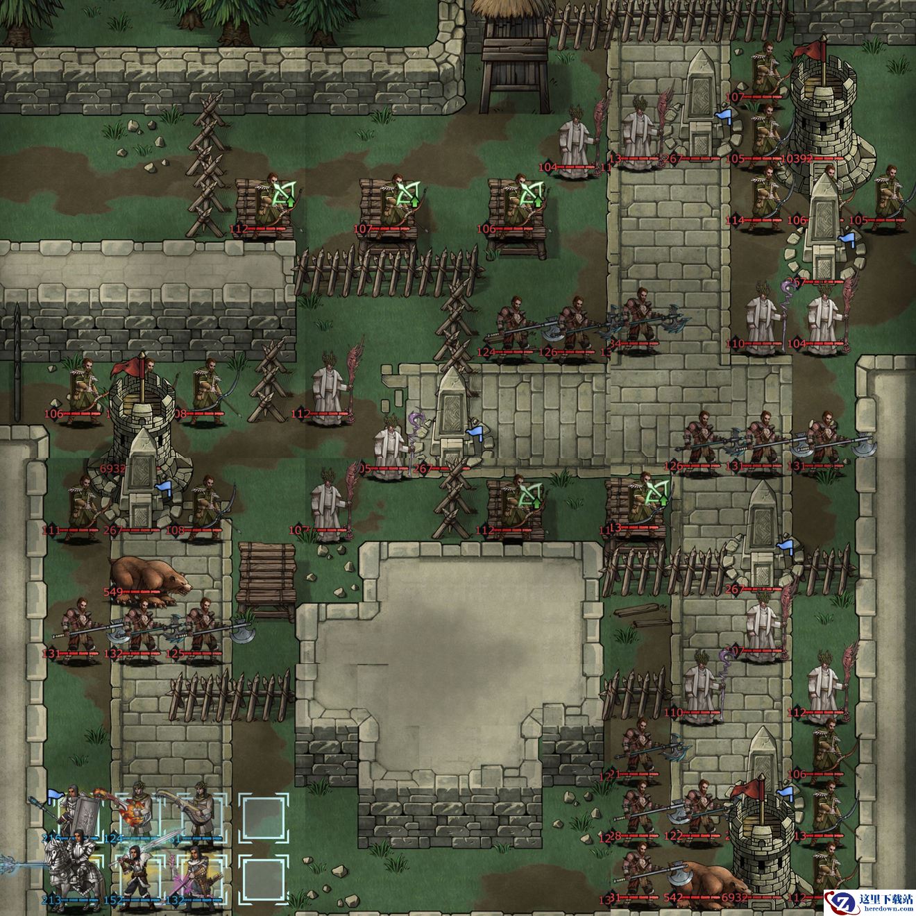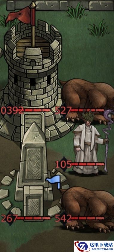 第7、9回合分别在主塔右边刷新2熊1大德、3大德