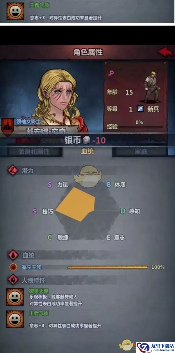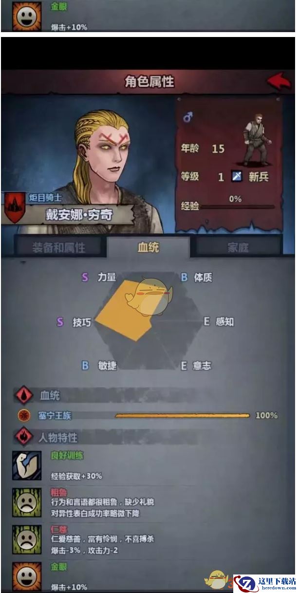 每个国家都有两个橙色特性(圣痕和普通橙色),三个蓝色特性(高级蓝和两个普通蓝色)和一个负面buff特性,分别对应着几个外观特征,你可以理解,只要了解有血统对的上,外观没错,那么对应的特性一定有,反之亦然。