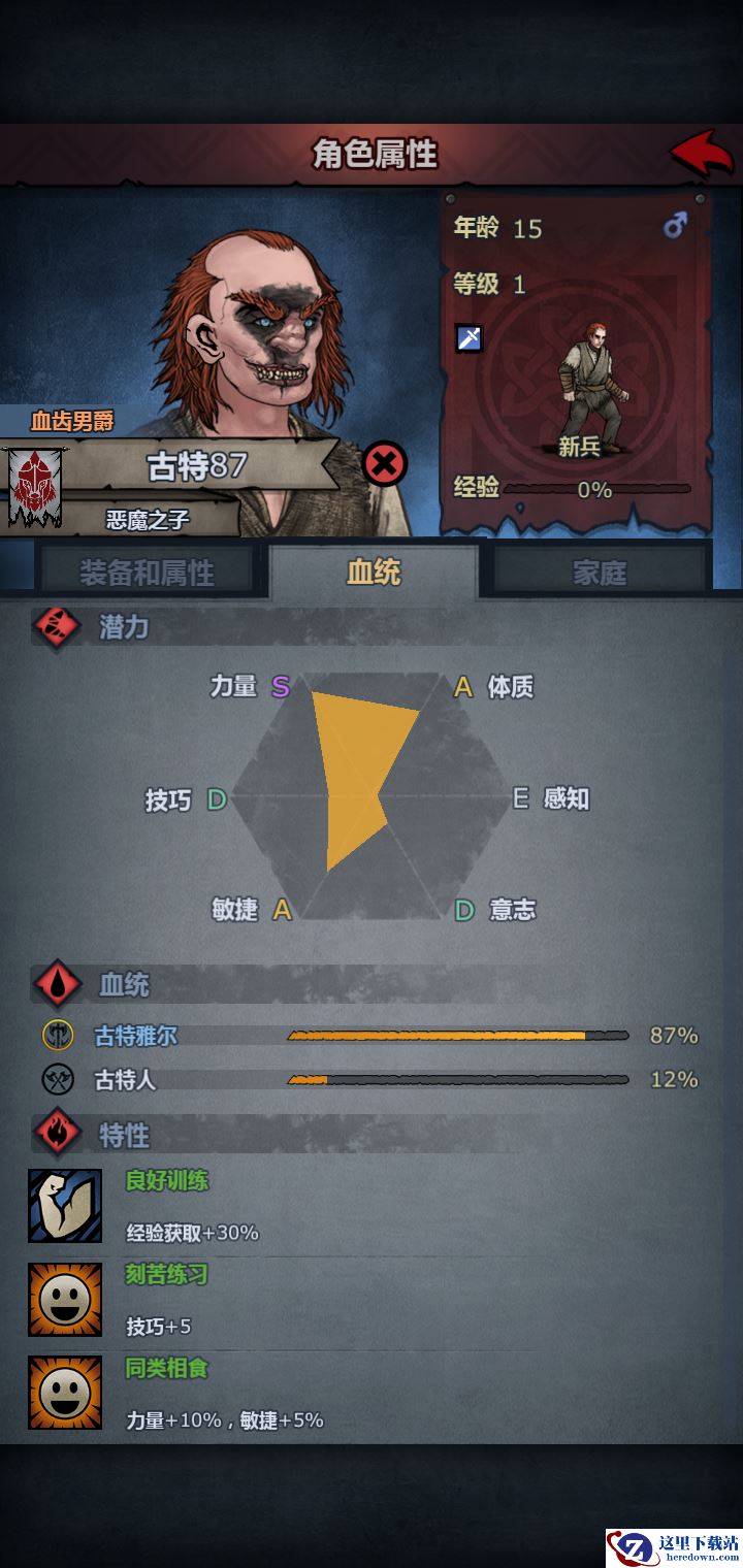 每个国家都有两个橙色特性(圣痕和普通橙色),三个蓝色特性(高级蓝和两个普通蓝色)和一个负面buff特性,分别对应着几个外观特征,你可以理解,只要了解有血统对的上,外观没错,那么对应的特性一定有,反之亦然。
