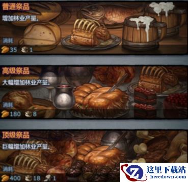 每级神像祭拜加成0.5%,狩猎的产出均有相对的堡垒。