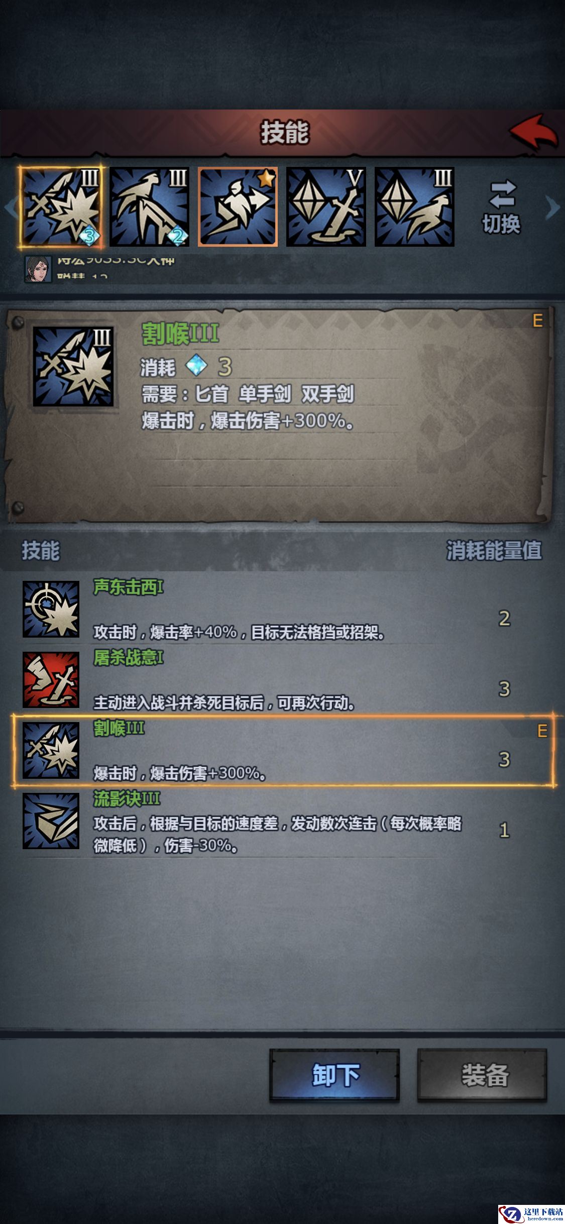 主动2:移形幻影2能量,使敌人无法格挡招架,还加暴击率为割喉服务,3级就行,越高越好。