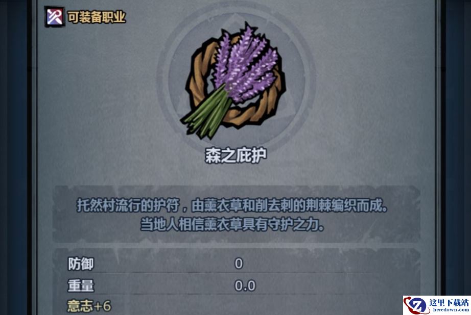 2、森之庇护的属性是4体质、14负重、数值并不低.
