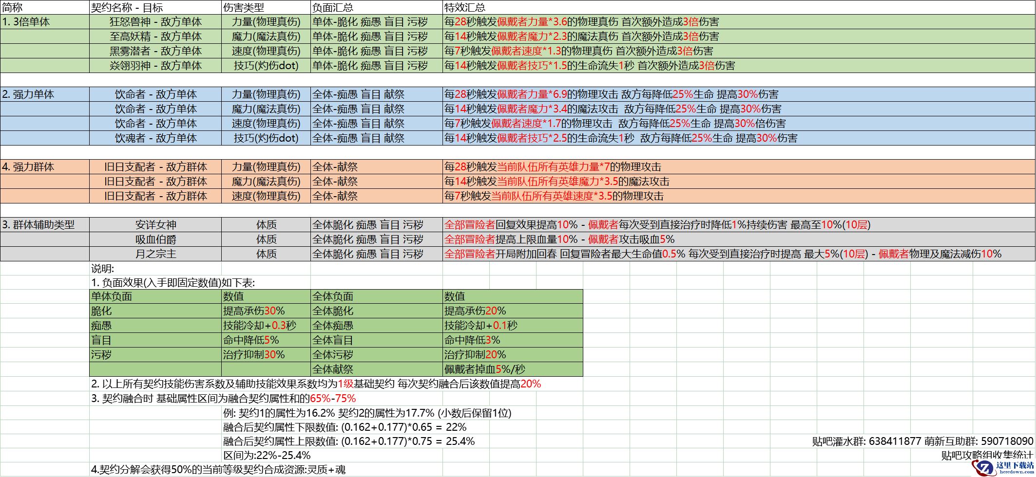 月之宗主: 最强辅助契约,除了痴愚和盲目影响大一点不推荐留(也可以合成吃掉赌)脆化和污秽几乎相当于白给,经过测试得出结论这个回复的名称不是回春或者大回春之类的任何回复技能应该是新的独立名称(月之宗主回春)不与任何其它回复技能冲突并且受到治疗必然触发叠的飞快。
