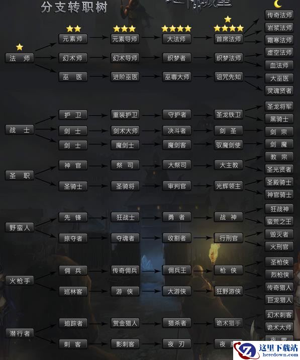 《地下城堡2:黑暗觉醒》中有着丰富的转职系统,玩家可以在游戏中体验数十种不同职业的英雄,而这所有的数十种职业全部都是由最初的六个职业进阶而来,他们各有优劣,在不同的战场上发挥着巨大的作用。现在就让我们看看究竟有多少种职业吧!