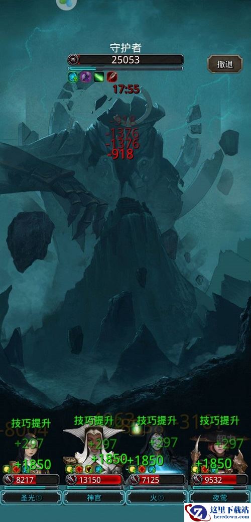 然后等BOSS狂暴后,接着挂机把右手击杀,这时候大概攻击总共耗时10分钟左右,然后就全力杀BOSS本体,大概还需要花10分钟左右,也就是还要经历两次狂暴,在挂机击杀BOSS本体的时候请注意全员血量,BOSS群攻伤害6000-8000左右(感觉杀完左右手后伤害加了不少),所以请注意BOSS技能进度条,不要低血量抗伤害,否则要挂。