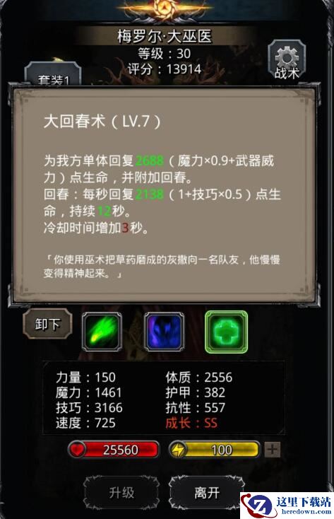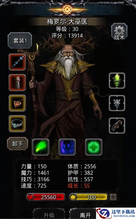 巫医重点说下,首先是装备,衣服最好穿神谕长袍,因为有10%的回复效果,回复效果对永生之戒的回血也有加成,大大提高巫医暴毙概率,战利品方面,除了凑血量(流浪剑客徽章5体质8技巧),最好选择带回复效果的技巧战利品。