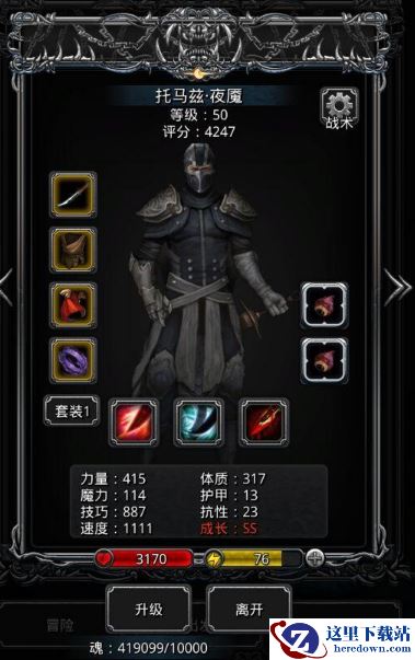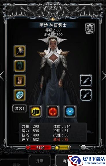 我的出战阵容是神官骑士、传奇法师、夜魇和火法,输出的火法或者夜魇也可以换成狂战神,但是狂战神需要堆比较多的命中,不然输出不够会团灭。