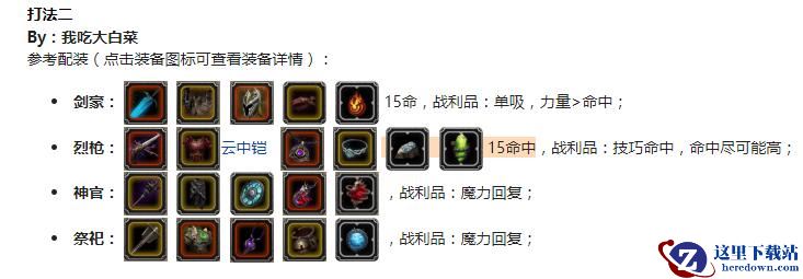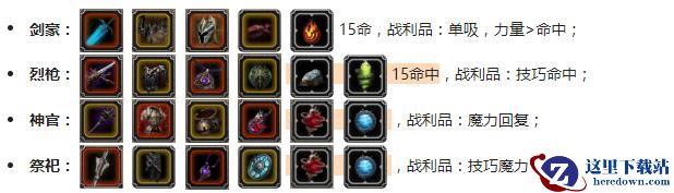 对自己操作有信心的同学可以试试下面这套烈枪,烈枪和剑豪的战利品完全不带命中,利用苍锤的抑制和高伤害快速清手,缺点是2分钟后的陨石要处理仔细(神官可以同时给到3人buff)